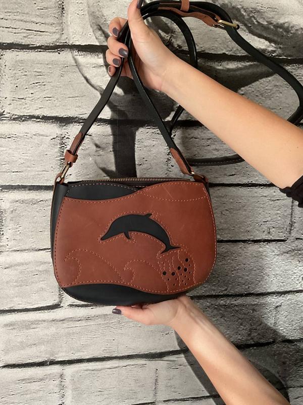 Стильная сумка из кожи, выполненная с сочетанием двух цветов;