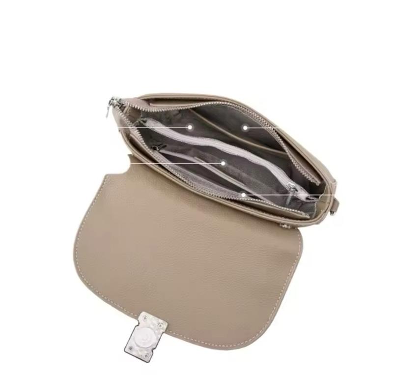 Имеет одно отделение на молнии, которое дополнительно закрывает накидным клапаном с кнопкой магнитом.