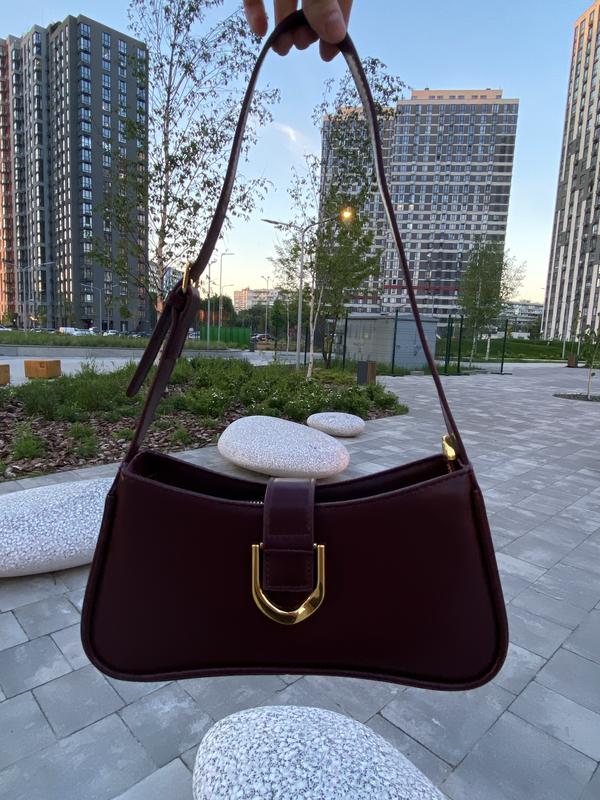 Стильная, удобная женская сумочка багет.Лодка держит форму, в нее поместится все необходимое.Фурнитура золотая.В середине одно большое отделение и маленький карман.Кольори:-Черная;-Бордова;Размер:-ширина 6 см;-высота 15 см;-длина 28 см;