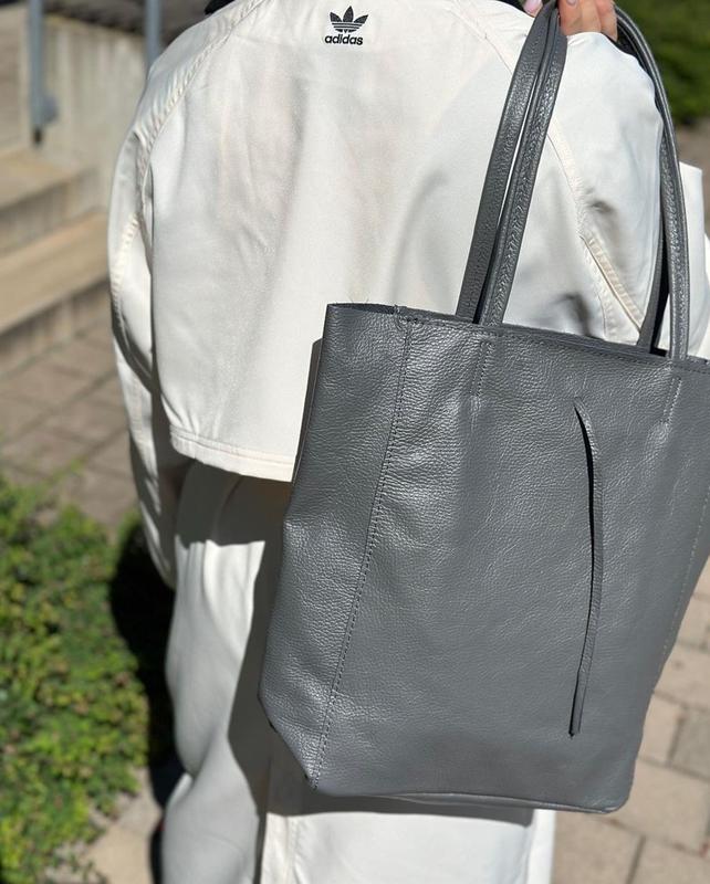 кожаная сумка шопер натуральная кожа темно серый цвет ( графитовый ) Натуральная кожа Вера пелле Италия Мягкая сумка с длиными ручками на плечо бежевая