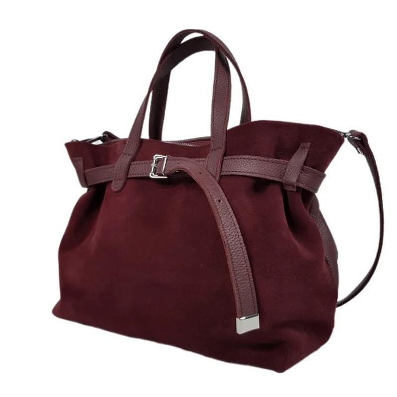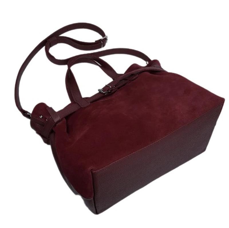 Сумка женская средняя натуральная кожа, марсала флотар, замша 1601