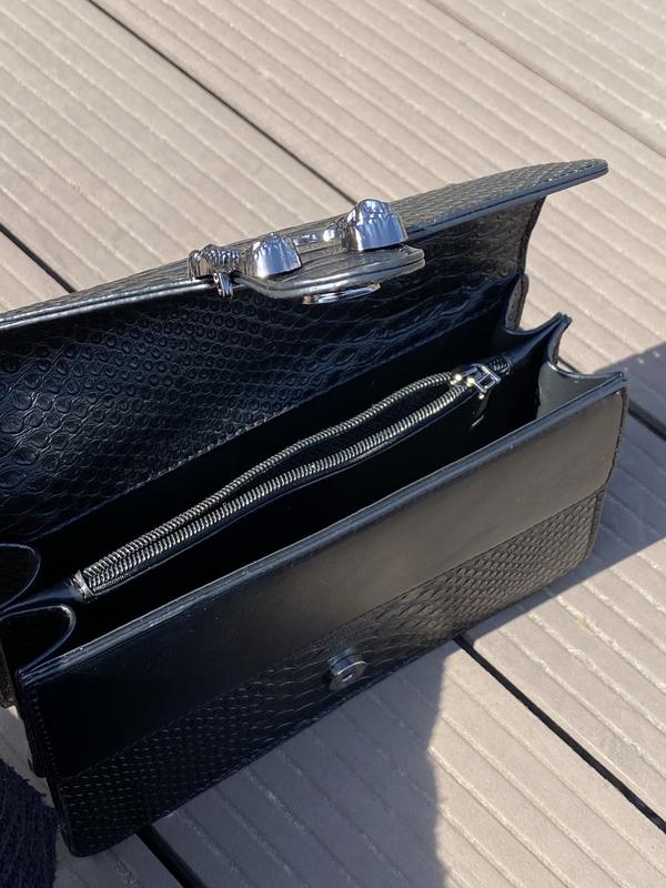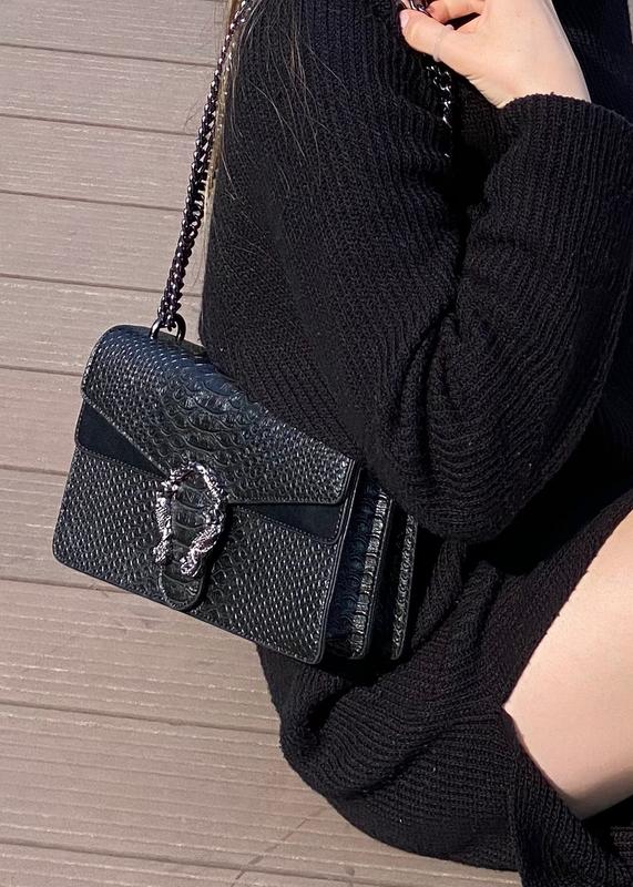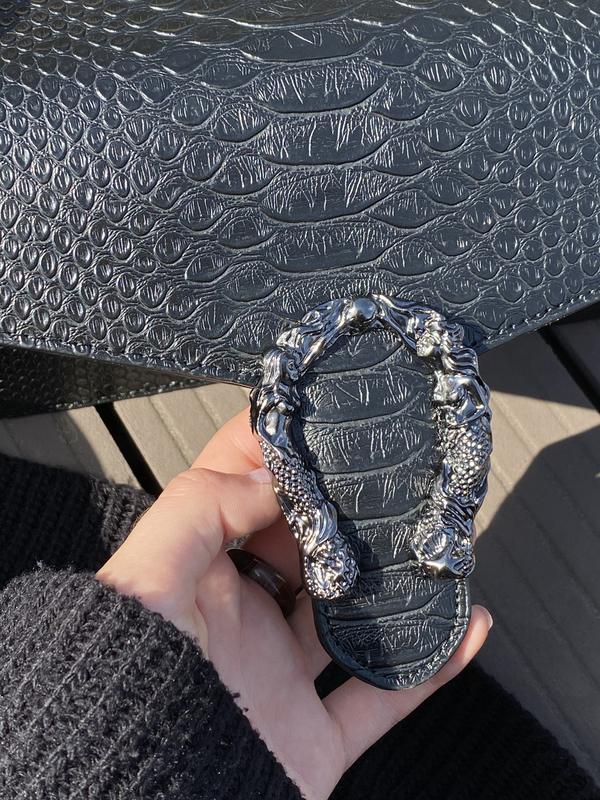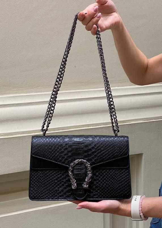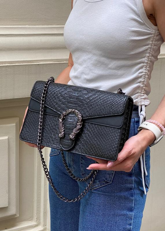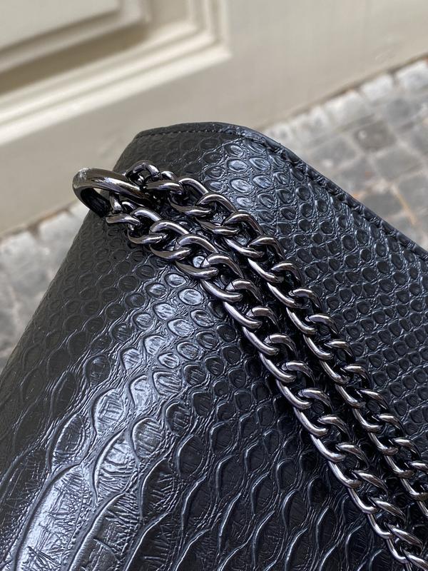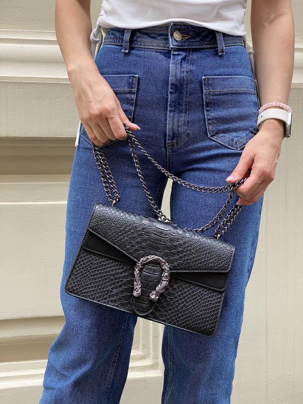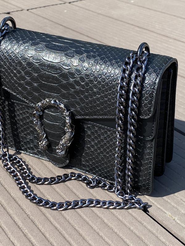 Сумочка на цепочке сделана в стиле рептилии, в качестве украшения имеет на