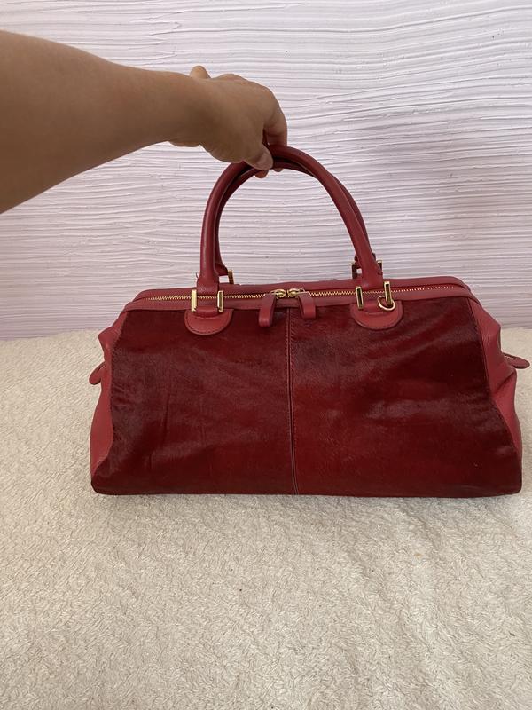 Сумка от известного кутюрье, эксклюзивная модель. Натуральная кожа в комбинации с натуральным мехом с коротким ворсом. Есть небольшая потёртость меха вверху, есть на фото, в носке не видно. Сумка чистая. Замеры на фото. Смотрите и другие мои объявления.