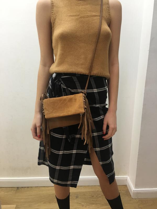 Двухсторонняя сумка на длиной ручке, ширина 20см, высота 16 см, в разложенном виде 26 см, длина ручки 60 см,на змейке, внутри на подкладке,внутренний карманчик на змейке