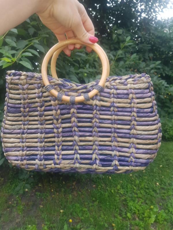 Соломенная сумочка, тканевая подкладка, одно отделение с маленьким карманом.