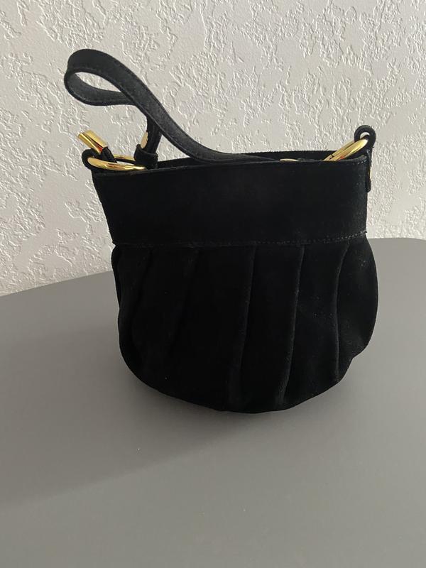Замшевая сумкаВнутри 5 отделений Фурнитура целая Цвет чёрныйМатериал : натуральная замша Состояние новой вещиХранение в чехлах