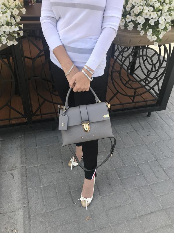 Можно носить сумочкой с маленькой ручкой или на длинном наплечном ремне - длинна 150 см , который перестегивается двумя разными вариантами . На сумочке имеется кожаный брелок .