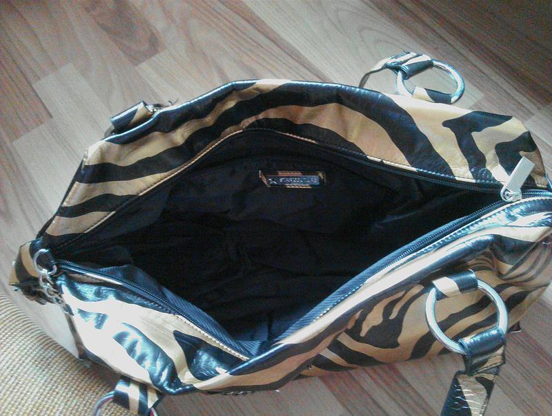 Сумка золотисто-черного цвета в экзотический принт известного немецкого бренда Harald Glöökler серии Star Couture, 43x23x14,5 см, длина ручек 57 см