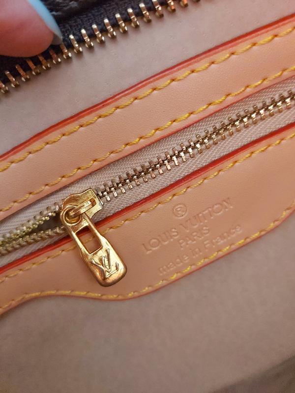 размер высота 31 см, ширина 43 см, бока 12 см, ширина дна 12 см, все молнии и надписи оригинальные, на всех заклепках, кольцах, замочках оригинальные надписи бренда производителя, сделано во Франции, Модный дом Луи Виттон, идеальная внутри и снаружи, нет потертостей, только спереди на золотом логотипе есть потемневшие точки и пятнышки, на фото хорошо видно. Но почитателям и ценителям бренда эта мелочь не принесёт огорчения, вы будете с этой сумкой однозначно на высоте!