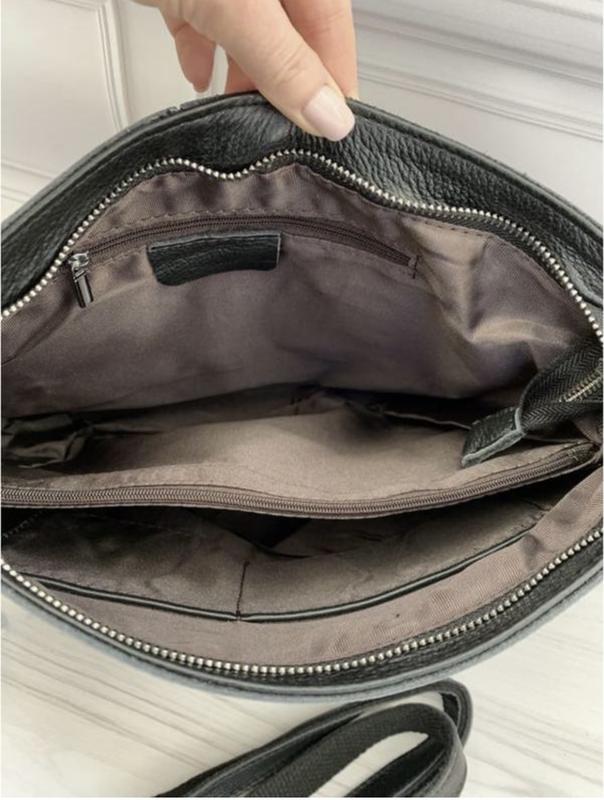 Сумка имеет одно вместительное отделение на молнии, по середине которого расположен карман на молнии. Дополнительно внутри сумки расположены потайной карман на молнии и два открытых под телефон и кошелёк 👍