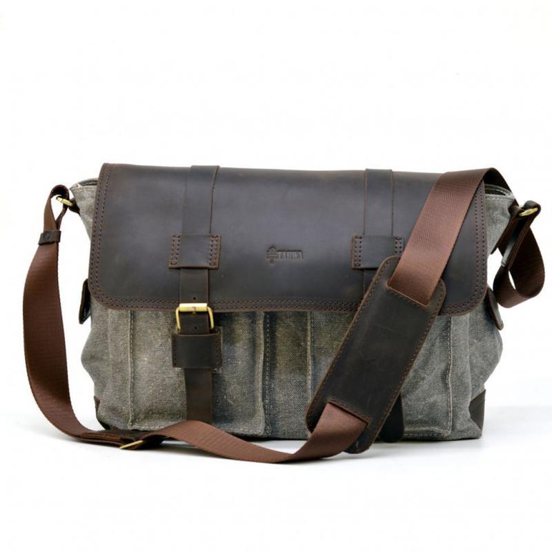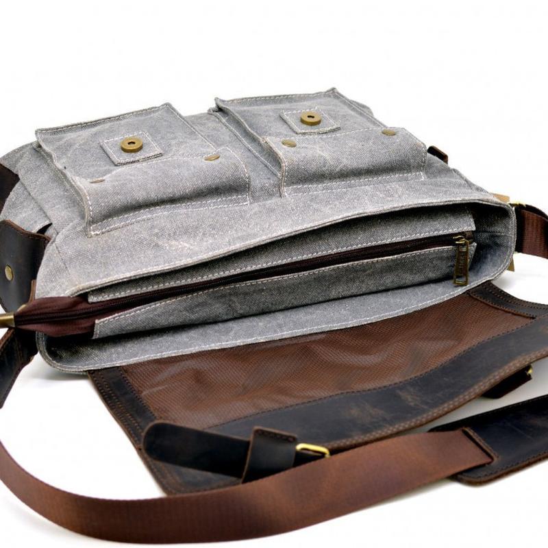 Сумка через плечо, микс ткани канвас и кожи RGj-6690-4lx от украинского бренда TARWA. Вместительный стильный аксессуар для мужчин.