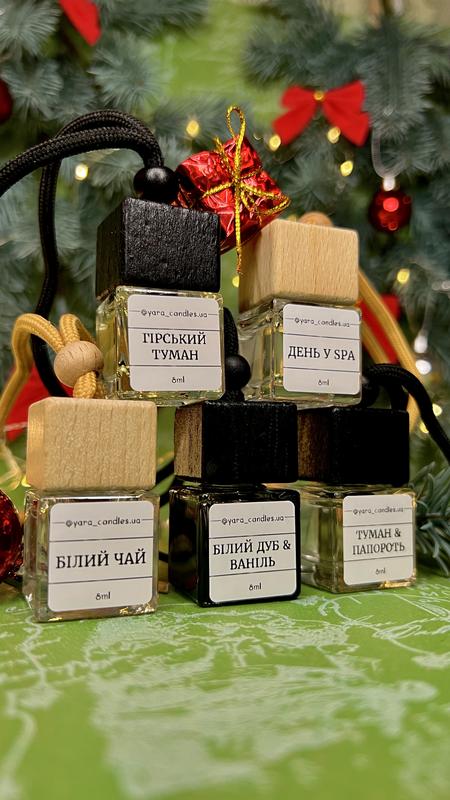Автодиффузор ручной работы. Основа - американские качественные аромамасла и база для диффузора. Продолжительность- 2-3 месяца в зависимости от желаемой интенсивности аромата. 100% натуральные компоненты Стильный дизайн Долговечность аромата. Как пользоваться? 1. Открутить деревянную крышечку 2. Снять защитную пластиковую крышечку 3. Закрутити деревʼяну кришку полотно 4. На 2-3 сек перевернуть бутилочку, чтобы жидкость пропиталась сквозь дерево и шнурок 5. Повесить на зеркало. Наслаждаться ароматом. Периодически переворачивать бутилочку для обновления аромата. 5 ароматов на выбор: ДЕНЬ У СПА (Ноти аромату: •Верхние ноты: лимон, лайм, лемонграсс •Средние ноты: жасмин, черная смородина, сахар •Базовые ноты: пачули, пудра). -БІЛИЙ ЧАЙ (Ноты аромата: •Верхние ноты: лимон, мандарин •Средние ноты: имбирь, бергамот •Базовые ноты: белый чай, жасмин) - БІЛИЙ ДУБ ТА ВАНІЛЬ ( Ноты аромата: •Верхние ноты: пальма, алоэ •Средние ноты: дуб, кожа, пачули •Базовые ноты: дым, ваниль, виски) - ГЕРСКИЙ ТУМАН (Ноты аромата: •Верхние ноты: озон, зеленые цветы, мята, морские ноты, яблоко •Средние ноты: зеленые листья, эвкалипт •Базовые ноты: мох, бальзам, сандал) - ТУМАН И ПАПОРОТЬ(Ноты аромата: •Верхние ноты: озон, бергамот •Средние ноты: лаванда, мята •Базовые ноты: мох, земля, можжевельник)