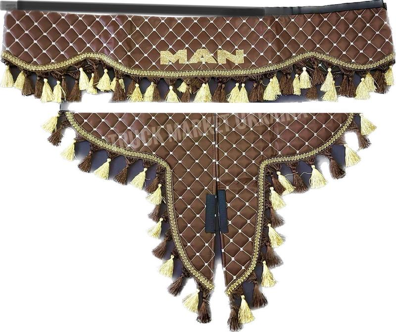 Шторы премиум в кабину MAN МАН лобовое стекло-1 и боковые-2 коричневые
