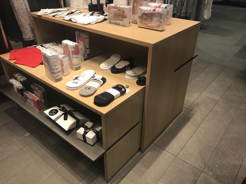 Виробник: Інший виробник Тип обладнання: Стійки Розкладка для товару. Фірмове обладнання магазину Calvin Klein. Складається з: стіл великий + перфорована полку стіл малий + перфорована полку В наявності 2 комплекти столів Додатково можна доукомплектувати тумбою висувний - 600грн/шт