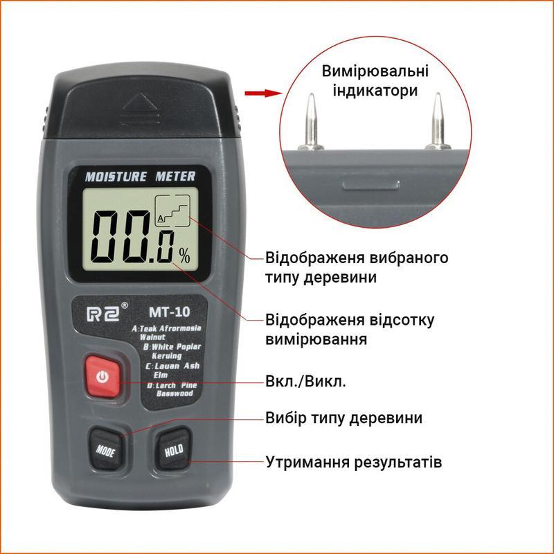 Прилад для вимірювання вологості дерева портативний, легкий і простий у використанні. Його дизайн і характеристики були розроблені спеціально під потреби деревообробної індустрії. Ви можете з його допомогою отримати точні показники, налаштувавши його на необхідний тип деревини залежно від вмісту в ній смоли. Вологомір дерева дає змогу проводити аналіз вмісту вологи більш ніж у 100 різновидах та породах деревини, отримати потрібний результат точно та швидко.