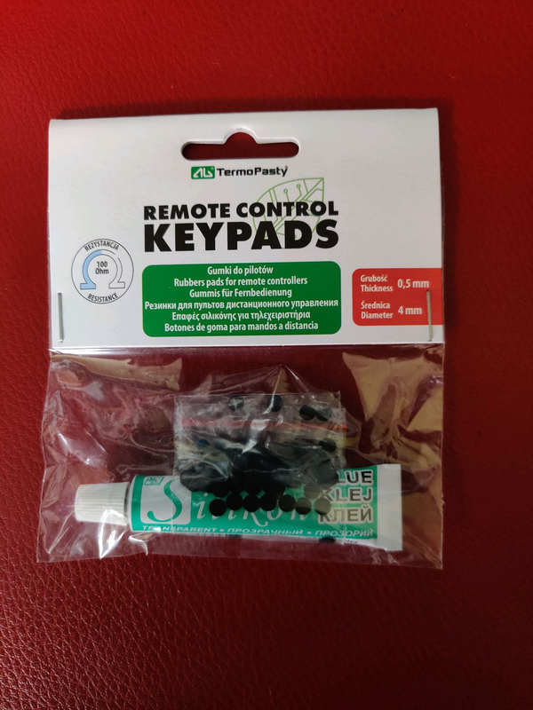 Набір включає в себе 100 +/-2 струмопровідних гумових п'ятаков високої якості і тюбик силіконового клею.