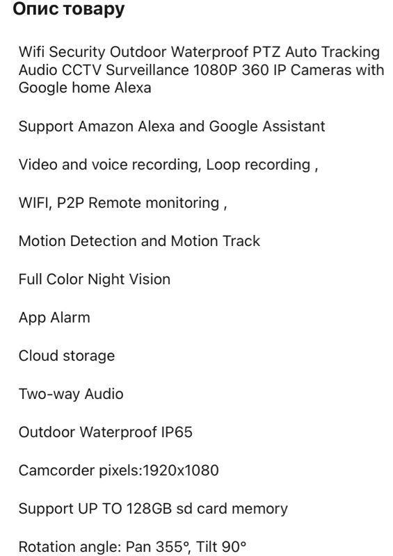Виробник: Інший виробникТип обладнання: Камери відеоспостереження