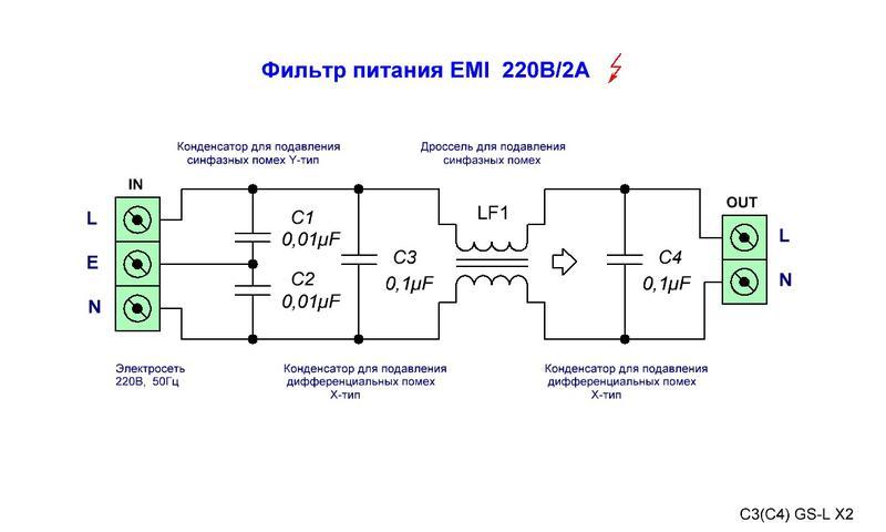 электромагнитные помех. EMИ фильтр звукового усилителя, уменьшает шум, создаваемый помехами переменного тока.