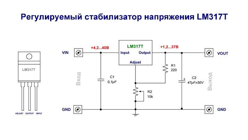 Понижающий преобразователь, линейный регулятор напряжения LM317T.