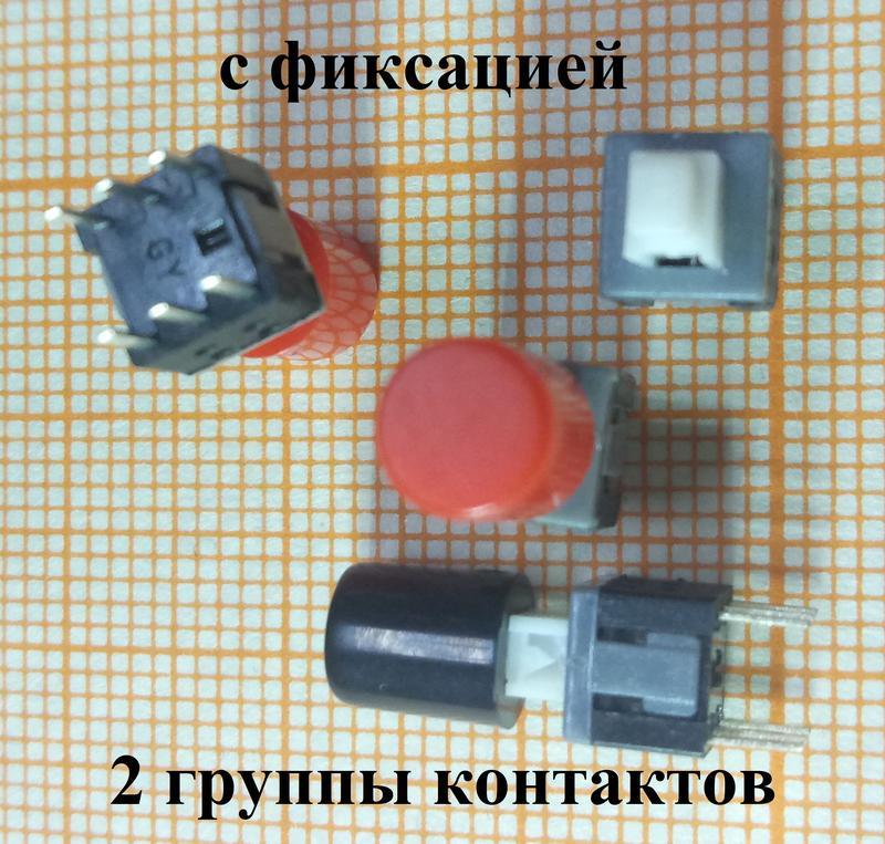 Виробник: Інший виробник Тип обладнання: Інший тип обладнання Кілька примірників у наявності Кнопка 5,8х5,8х10,5 з фіксацією, 2 групи контактів, перемікання середнього контакту на крайні ON-OFF, чорна та червона кнопка для товкача. Кількість запитуйте,