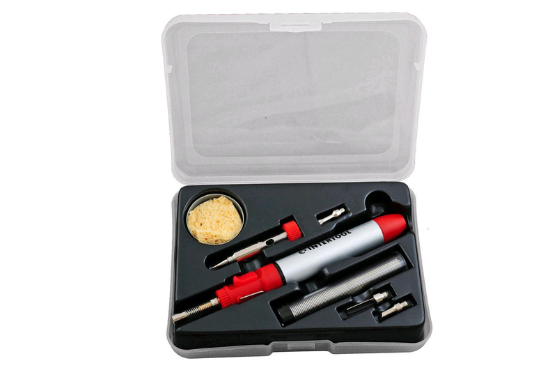 Мікрогорелка з набором аксесуарів включає в свою комплектацію пластикову валізку, 4 насадки для пайки та різання, губку для зачистки жала, олов'яний припій. Ціна даного пальника більш ніж доступна, враховуючи багату комплектацію для виконання багатьох робіт по спайці деталей, нагрівання і різанні. Грілка "олівцем" типу має додаткову металеву ніжку-підставку. Її призначення - це установка пальника в підвішеному стані при максимально розігрітому жалі. Об'єм резервуару: 12 мл; Тип палива: зріджений газ бутан; Регулювання полум'я: так; Температура: 1300 ° С; Матеріал корпусу: алюміній; Займання: від відкритого вогню; Комплектація: пластиковий кейс;