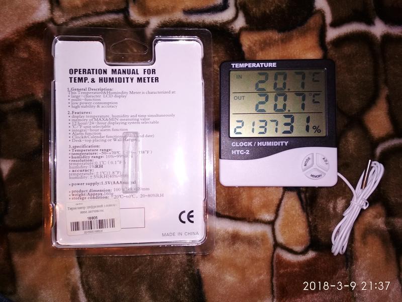 Гігрометр Термометр цифровий HTC-2 з виносним датчиком.