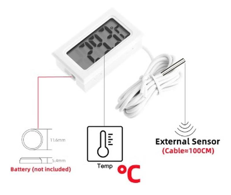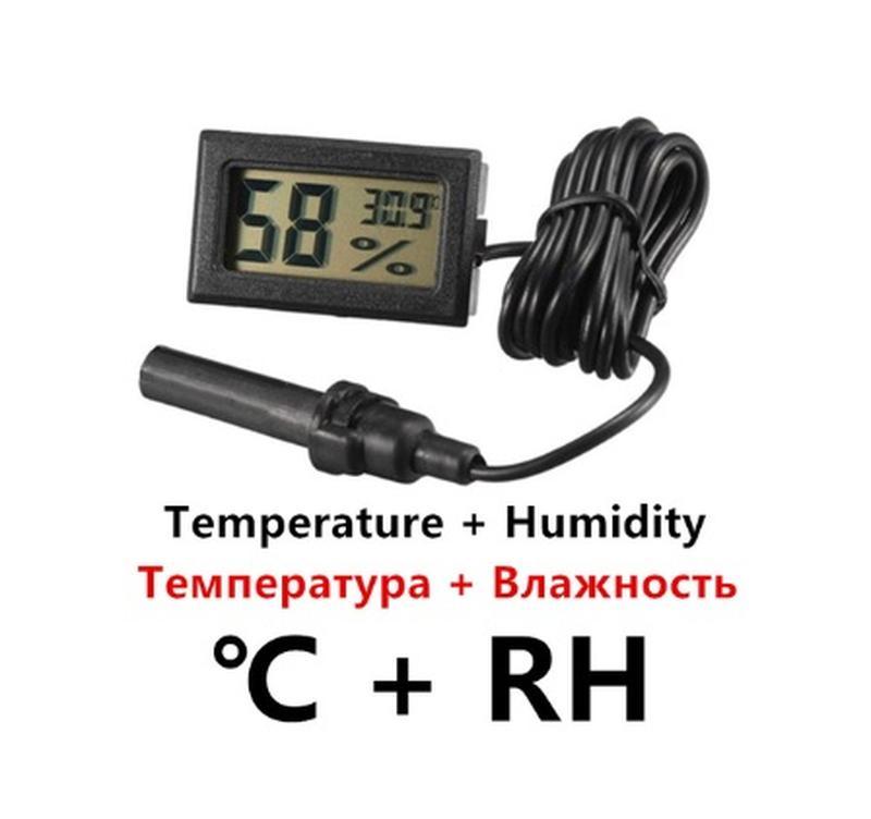 Электронный термометр гигрометр с ЖК-дисплеем полезен и незаменим для измерения относительной влажности и температуры в погребах, инкубаторах, кейсах и помещениях для музыкальных инструментов, боксах для хранения специй/сигар, в холдильнике и т.д. Выносной датчик на проводе поможет замерять наружную температуру не выходя из дома с высокой точностью, либо установив датчик в любое другое труднодоступное место на расстояние вытянутого провода. Прибор имеет клипсы для установки в монтажные отверстия (для удобного размещения, например, на приборной панели и т.д.).