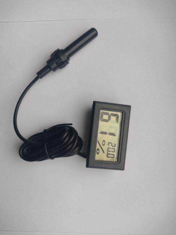 Есть в наличии просто термометр(без гигрометра, последнее фото, размеры те же, Длина выноса провода термометра - 2м. Цена - 100 грн. С двумя батарейками - цена 130грн