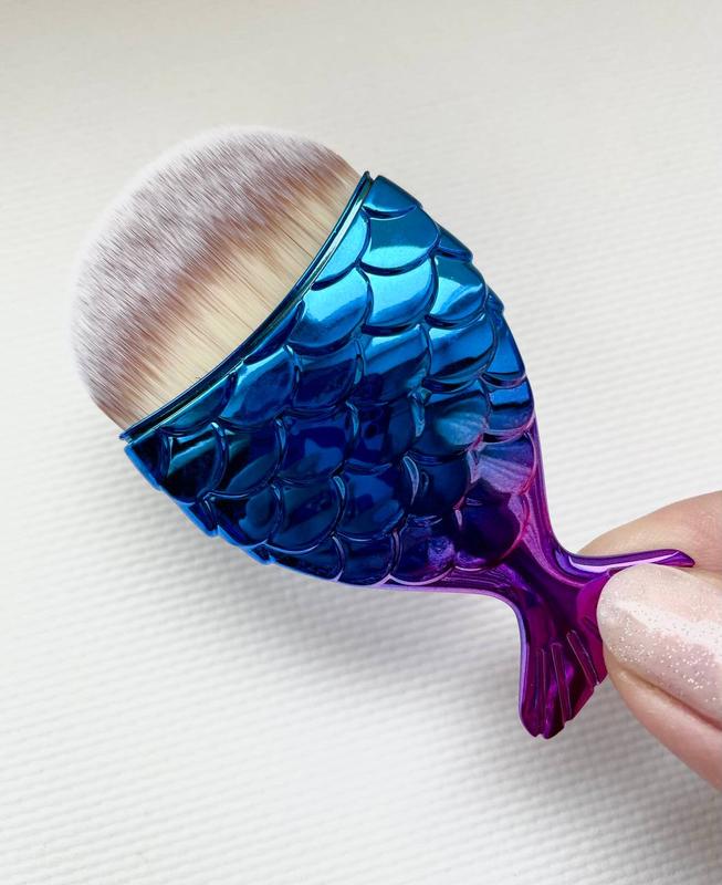 Кисть для макияжа выполнена в виде хвоста рыбки. Отличное качество изготовления, оригинальный дизайн и универсальность данной кисти позволит выполнить множество различных этапов макияжа. Идеально подойдет для нанесения кремовой и минеральной косметики, контуринга, нанесения консилеров, пудры и румян. А также кисть может использоваться в макникюре для удаления остатков пыли при выполнении работ с ногтями.