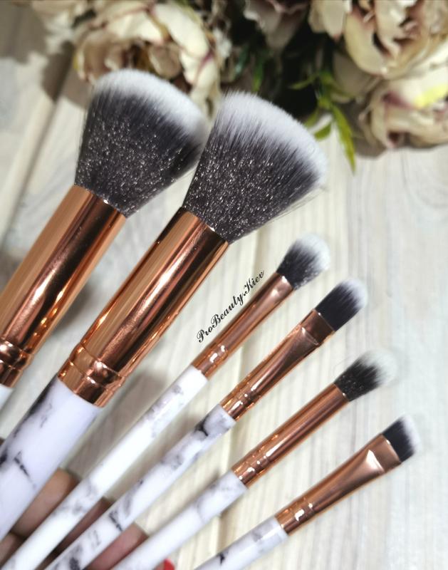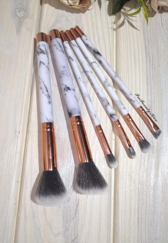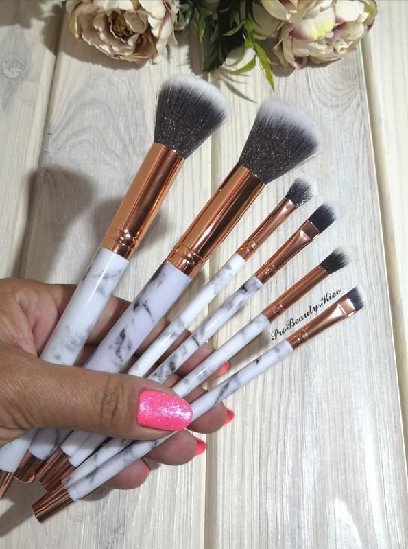 Длина кистей 15-18 см - качественный стильный полноразмерный набор кистей для макияжа из 6 кистей с оригинальной отделкой ручек под мрамор.