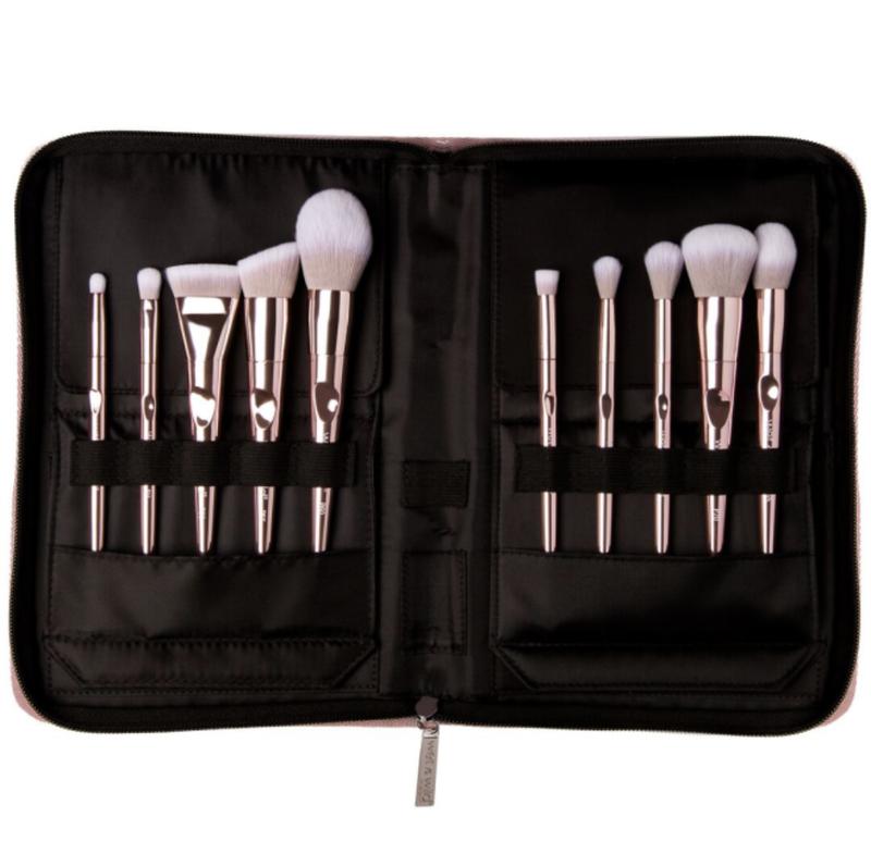 Лимитовая коллекция косточек в стильном и функциональном футляре на молнии, этот набор идеально подходит для ежедневного использования и путешествий. Ультрамягкая плотная синтетическая щетина для точного нанесения кремовой и пудровой косметики для лица и тела. Эргономичная ручка обеспечивает удобное и легкое удерживание. Сетчатый держатель на лицевых щетках, чтобы удерживать щетину.