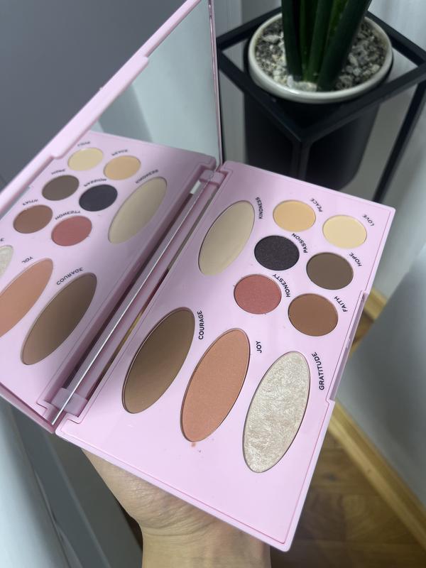 - включает прозрачную пудру, универсальный хайлайтер, бронзер, румяна;