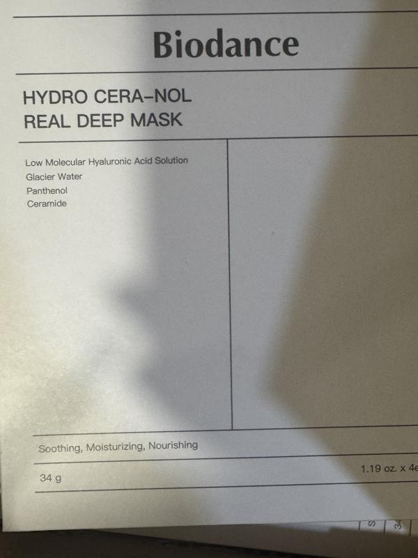 Biodance - Hydro Cera-nol Pack Deep Mask - гидрогелевая маска для лица, состоящая из двух частей (для нижней и верхней части лица). Она предназначена для нанесения на всю ночь или минимум на 3-4 часа для глубокого увлажнения кожи и повышения ее эластичности. Маска содержит композицию компонентов с успокаивающим и увлажняющим действием. Ее формула включает низкомолекулярную гиалуроновую кислоту, связывающую воду, и пантенол, который способствует регенерации и успокаивает раздражения. При этом церамиды укрепляют гидролипидный барьер, а ледниковая вода успокаивает и смягчает кожу. После того, как активная эссенция впитается в кожу, маска становится прозрачной.