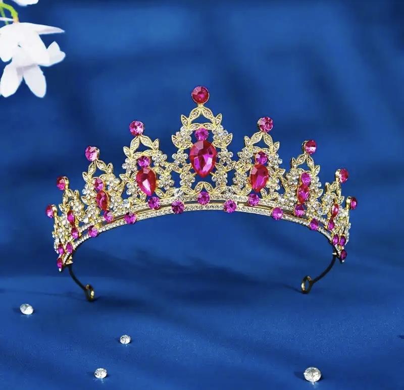 Диадема с розовыми камнями розовая малиновая