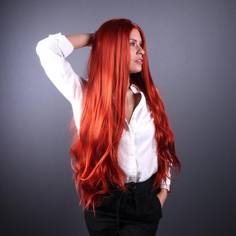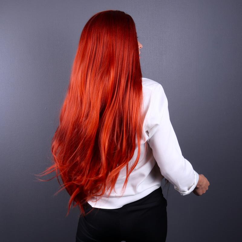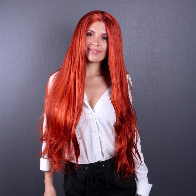 Оранжевый парик с имитацией кожи головы из ровных термоволос на Хэллоуин,