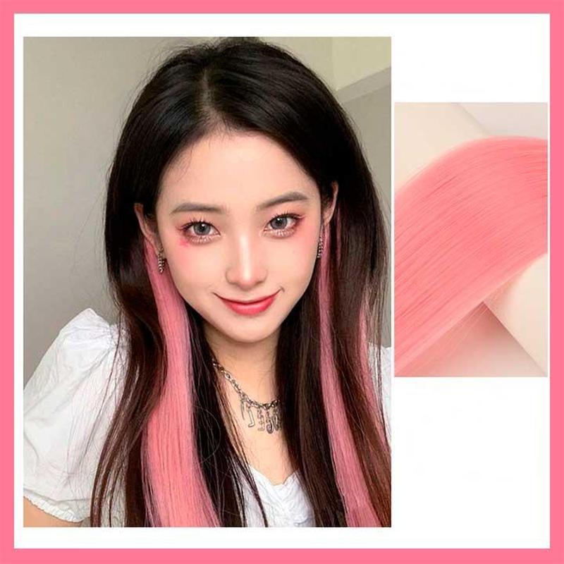 Цветная прядь волос на заколках 60 см розовый накладные волосы