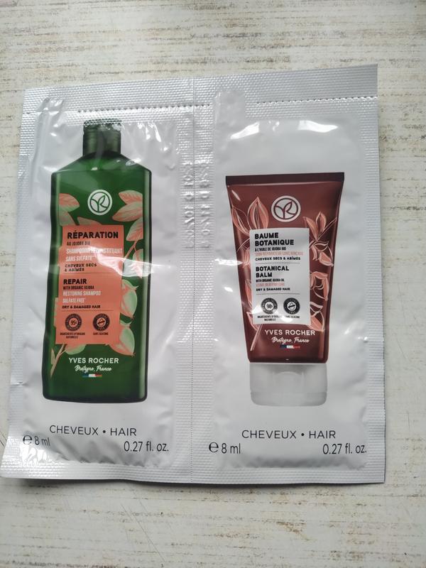 Шампунь Питание и восстановление волос с маслом жожоба, 8 мл. Специально разработанная формула шампуня идеально подходит для сухих и поврежденных волос. Благодаря насыщенной кремовой текстуре без силикона бережно очищает и восстанавливает волосы. Продукт обогащен органическим маслом жожоба, питает и защищает от ломкости. Волосы становятся более крепкими, более живыми и шелковистыми.