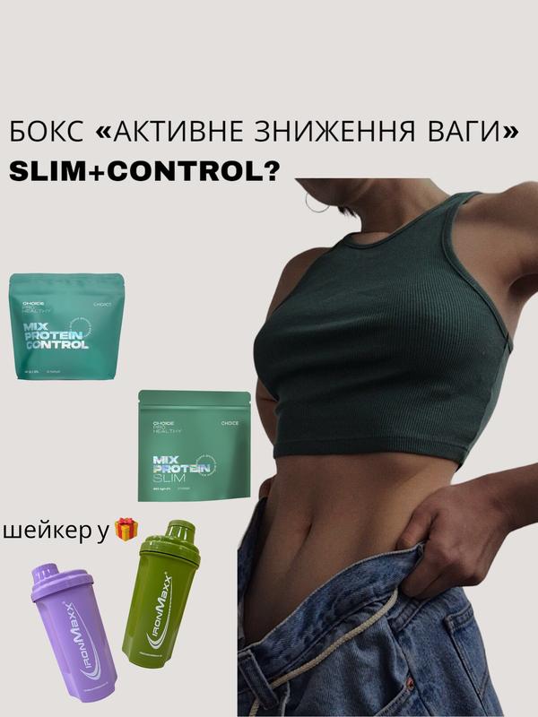 ПРИЗНАЧЕННЯ: Інтенсивний курс здорового схуднення для тих, хто прагне значно зменшити вагу. Зменшення об’ємів тіла. Тотальний детокс.Чудовий настрій. ОПИС: SLIM+CONTROL – ідеальне поєднання продуктів, що забезпечують інтенсивне здорове схуднення. 🌿Поживний коктейль Mix Protein Slim — це спеціально підібраний склад білків з різних джерел, складних вуглеводів, мінералів та 12 оригінальних жироспалювачів, які є основною рушійною силою боксу, що допомагають відчутно зменшити об’єми власного тіла. 🌿Поживний коктейль Mix Protein Tumult — джерело концентрованого білка та пребіотиків, що забезпечує контроль апетиту, зниження ваги та надійно підтримує мікробіом кишечника, слизових та шкіри. Продукти боксу мають низький глікемічний індекс і є безпечними для вживання людьми, які страждають на цукровий діабет 1 і 2 типу. ПЕРЕВАГИ: ✔️Концентрат різних джерел і форм білка. ✔️ТОП-5 найефективніших жироспалювачів. ✔️Природні форми вітамінів і хелатні форми мінералів. ✔️Низький глікемічний індекс. ✔️Низька калорійність. ✔️Без цукру, трансжирів, холестерину, лактози, глютену, канцерогенних цукрозамінників, штучних ароматизаторів і барвників. СПОСІБ ВИКОРИСТАННЯ: Сніданок бажано замінити коктейлем MIX PROTEIN SLIM. Готувати порцію поживного коктейлю MIX PROTEIN SLIM можна, додаючи 27 г сухого порошку (або 3 столові ложки без гірки) до 250 мл води або 250 мл молока (рекомендуємо рослинне молоко без підсолоджувачів: мигдалеве, кокосове, соєве, фундукове). Важливо!!!Через 30 хв після коктейлю,необхідно бути активною) Не лежати,не сидіти,РУХАТИСЯ!У складі коктейлю є жироспалювачі,які працюють коли ми активні! Далі,обід за розкладом(конструктор продуктів та рекомендації нутриціолога,можна отримати безкоштовно після оформлення замовлення) MIX PROTEIN CONTROL краще вживати замість звичної вечері. Готувати порцію поживного коктейлю MIX PROTEIN CONTROL можна, додаючи 27 г сухого порошку (або 3 столові ложки без гірки) до 250 мл води або 250 мл молока (рекомендуємо рослинне молоко без підсолоджувачів: мигдалеве, кокосове, соєве, фундукове) УСІ ОСОБИСТІ РЕКОМЕНДАЦІЇ ТА РЕКОМЕНДАЦІЇ НУТРИЦІОЛОГА,ви отримаєте , після оформлення замовлення. СКЛАД: MIX PROTEIN CONTROL, 405г- 1шт MIX PROTEIN SLIM, 405г - 1шт ПРОТИПОКАЗАННЯ: Вік до 18 років, вагітність, лактація, індивідуальна непереносність компонентів.