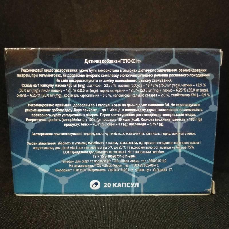 Состав: лактоза, семена тыквы, чеснок, листья полыни, корень валерианы, пижма, омела, крахмал картофельный, наполнитель стеарат кальция, стабилизатор КМЦ.
