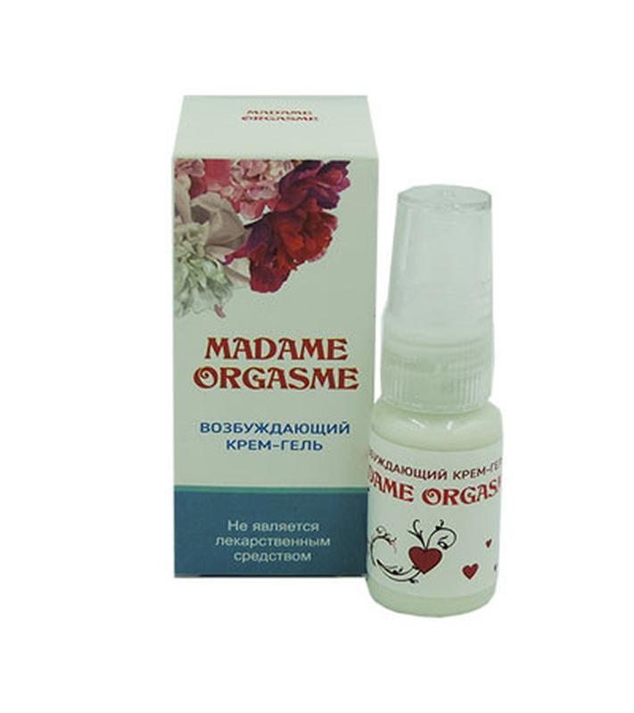 Madam Orgasm - збуджуючий крем-гель. Склад: Вазелинове масло, цетиловий спирт, парфум-добавка, перець стручковий, ізопропіл нікотинат, лімонен, феніл бутила метилпропіоналу, гідроксицитронеллаль, ліналоол, альфа-ізометиліонол, гераніол, цитронеллол, амілциннамал, бензил бензонат. Застосування: Для посилення відчуття нанести невелику кількість гелю на клітор та делікатно втерти. Застосовувати перед статевим актом, або для еротичного масажу. Гель можна використовувати для гігієнічного догляду за статевими органами жінки. Запобігає дрібних потертостей та мікротріщин, робить шкіру гладкою та пружною. Протипоказання: Індивідуальна чутливість до окремих компонентів продукту. Крем-гель 10 мл. Виробник - Австралія.