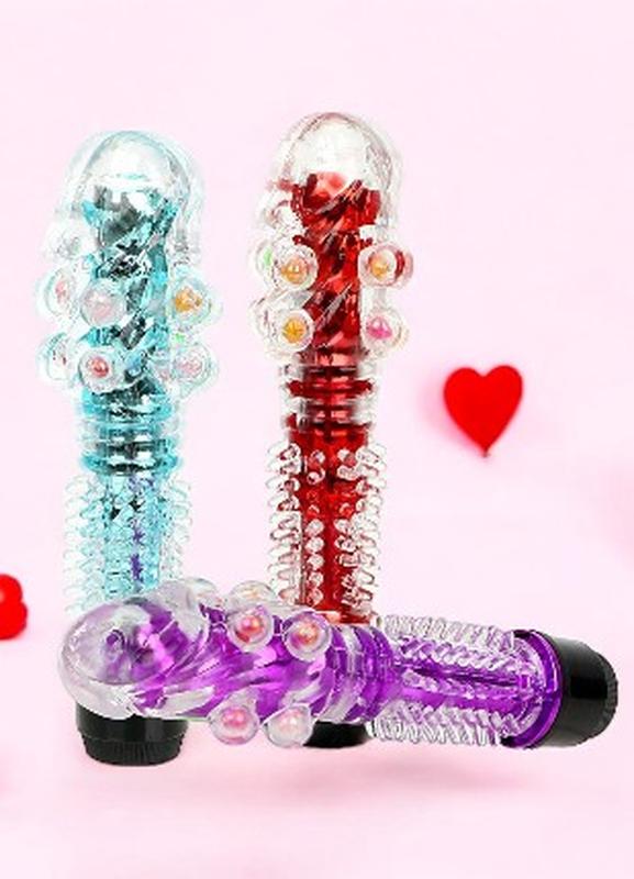 Вибратор с усиками и шариками. Плавная регулировка вибрации. Стимуляция точки G. Вибратор выполнен из прозрачного мягкого материала. Фалоимитатор имеет выраженную головку, на поверхности фаллоимитатора ближе к головке есть несколько рядов мягких шариков для дополнительной стимуляции, ближе к основанию вибратор покрыт мелкими усиками. Регулировка вибрации - плавная, интенсивность изменяется вращением пластиковой ручки в нижней части вибратора. Тип: Вибратор Длина: 17 см Диаметр: 3,7 см Питание: 2 х АAА (в комплекте не поставляются) Материал изготовления: Силикон, ABC Цвет: На фото