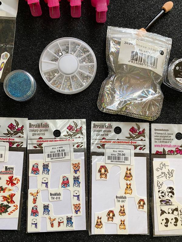 Комплект для декора маникюра 💅🏻Зеркальная пудра, стразы и синие блестки - новые, даже не открывались.Все решта-як на фото.