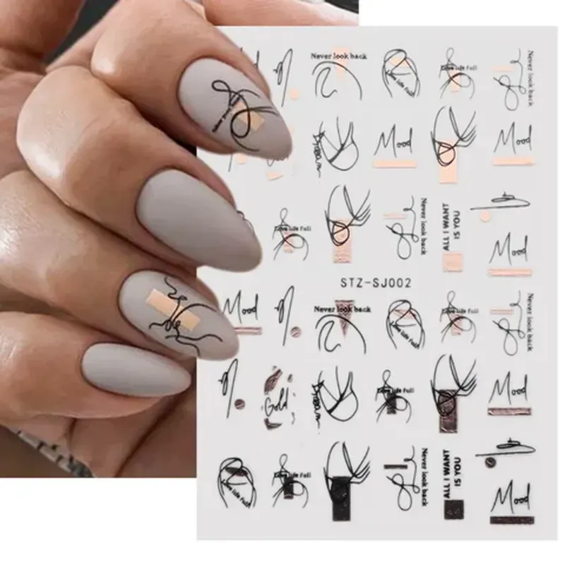 3d наклейки, слайдеры для дизайна ногтей, сусальное розовое золото stz-sj002 rose gold black
