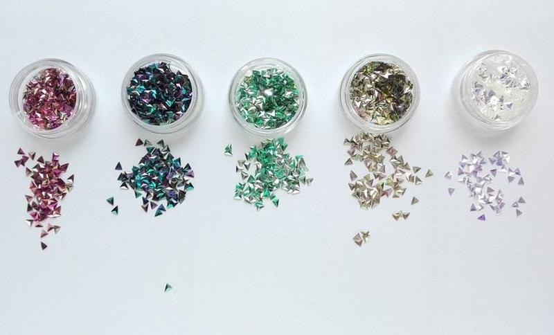 стразами, бульонками, фигурными блестками и т. д. Обладают эффектным