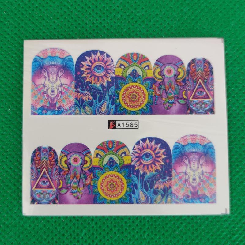 Водные наклейки для маникюра с индийскими слонами. Позволяют легко разнообразить повседневный маникюр. Чтобы хорошо носилися – нужно покрыть топом. Можна использовать в виде временные – топом покрывать не нужно. Размер листа 6,5*5 см.