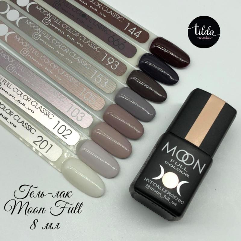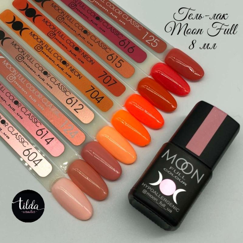 Гель-лак для ногтей Moon Full - гель-лак від польського бренду Moon. Вся палітра містить різнобарвні відтінки та відмінно підходить як для повсякденного життя, так і для свята. Лак поступово наноситься на нігтьову пластину і не розтікається. Має щільну структуру та здатний до самовирівнювання.