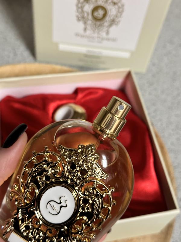 На начальной нотке распускаются объемные листья инжира. Они нежно берут в плен собственной непосредственностью. В центре расположился трогательный сладкий полутон шоколада, одевающий пирамиду в особенные краски. На шлейфе преподносит сюрприз союз ванили и податливого животного мускуса.