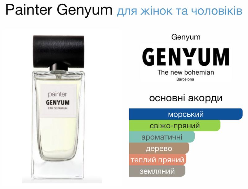 Genyum PainterYsl libre intense 50 ml100 mlПол: унисекс.Тип аромата: древесный, пряный.Верхняя нота: черный перец.Нота сердца: морские водорослевые.Базова нота: ветивер.