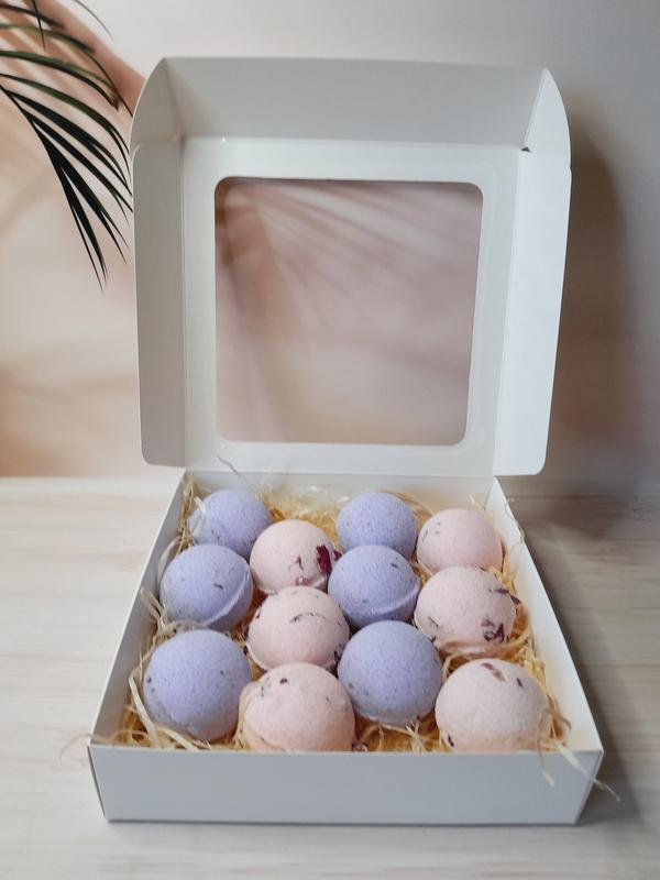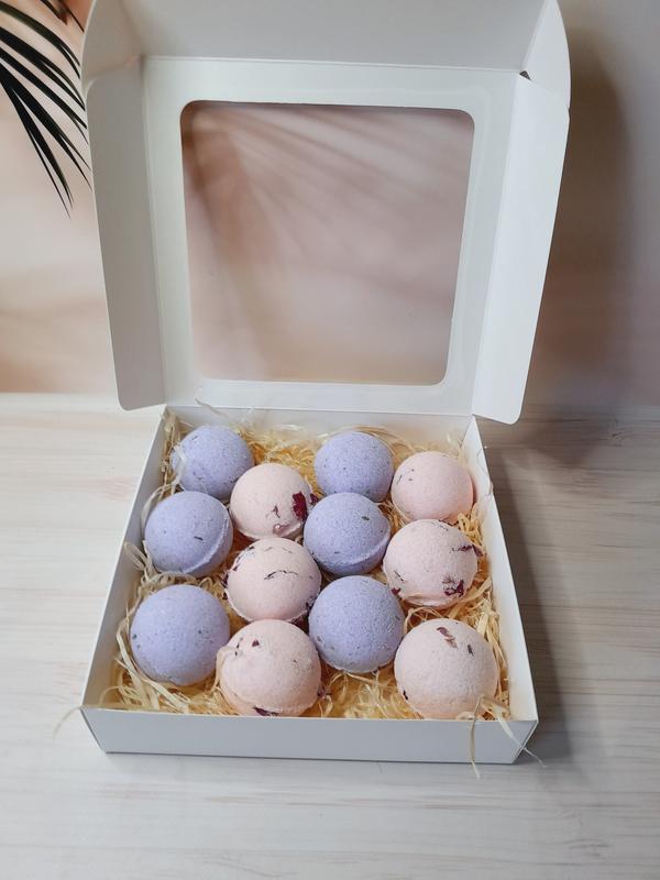 💣Бомбочки для ванни в подарунковій коробочці з віддушками троянди, лаванди із додаванням сушених квітів лаванди, пелюсток троянди. При використанні гарно, ефектно бурлять, забарвл