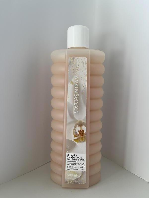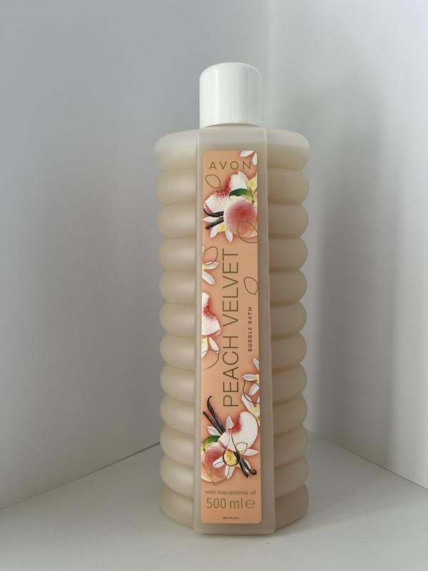 2). Пена для ванны «Бархатистый персик» (с маслом макадамии, аромат белого персика и ванильной орхидеи)